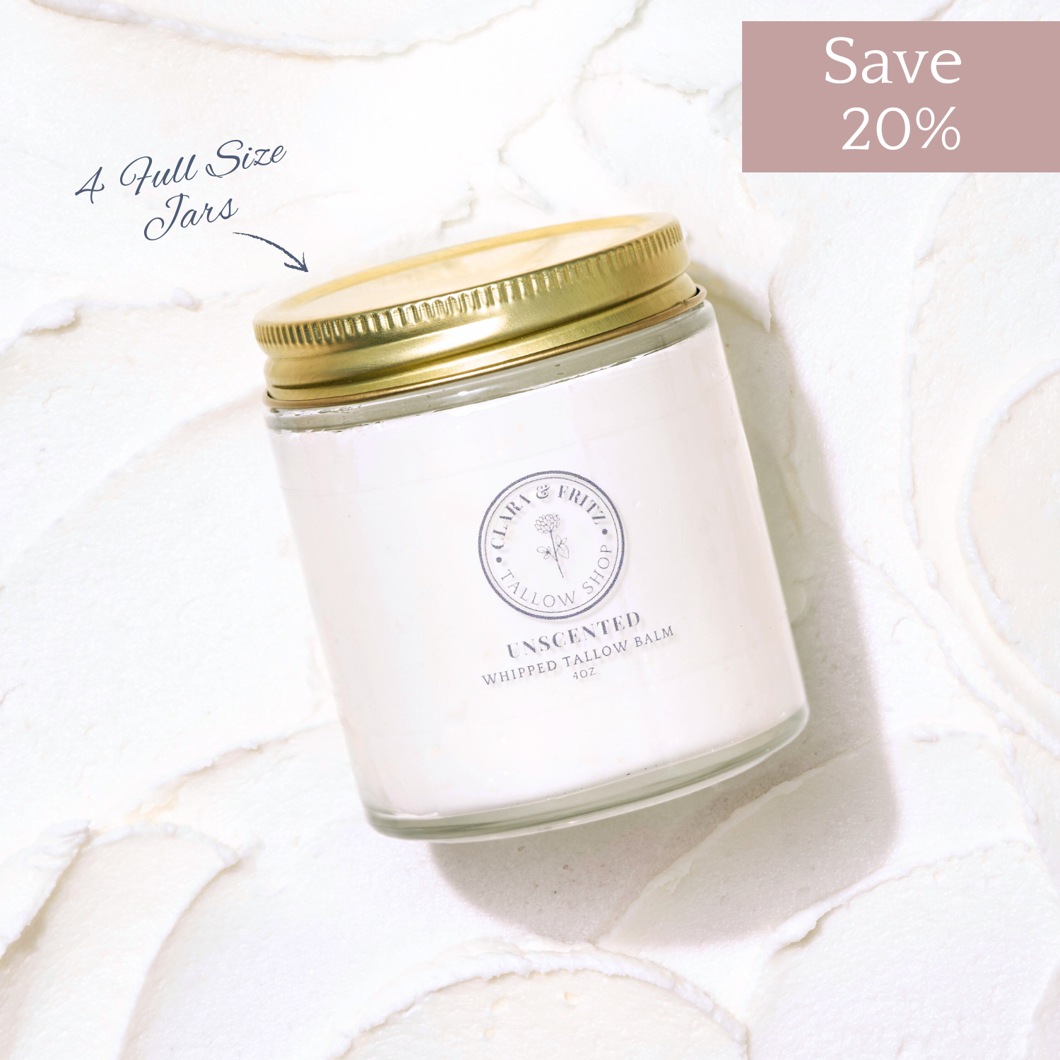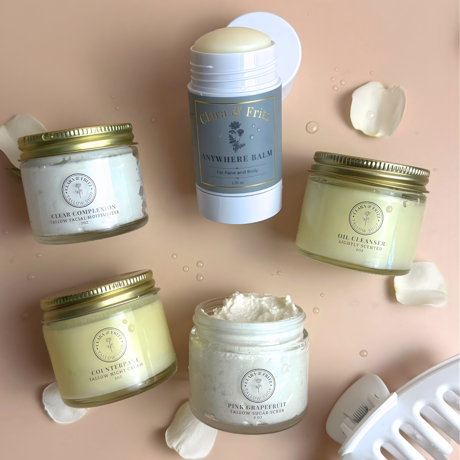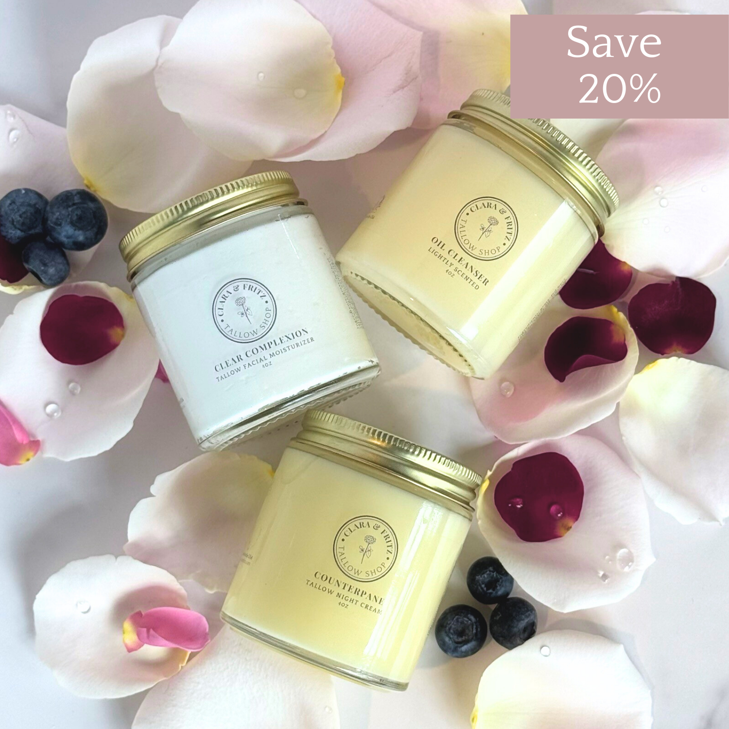 Grass-fed beef tallow base calms, balances, and won't clog pores.